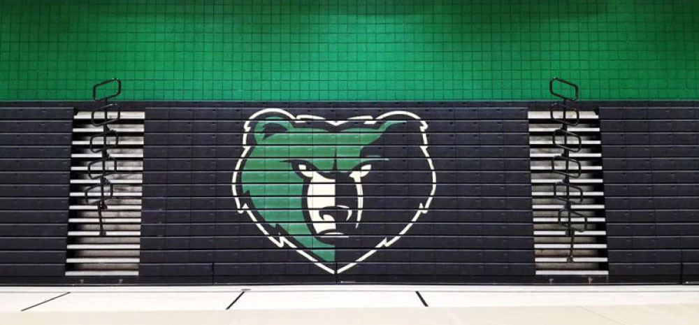 A durable, seamless, factory applied graphic logo solution for indoor bleacher systems.